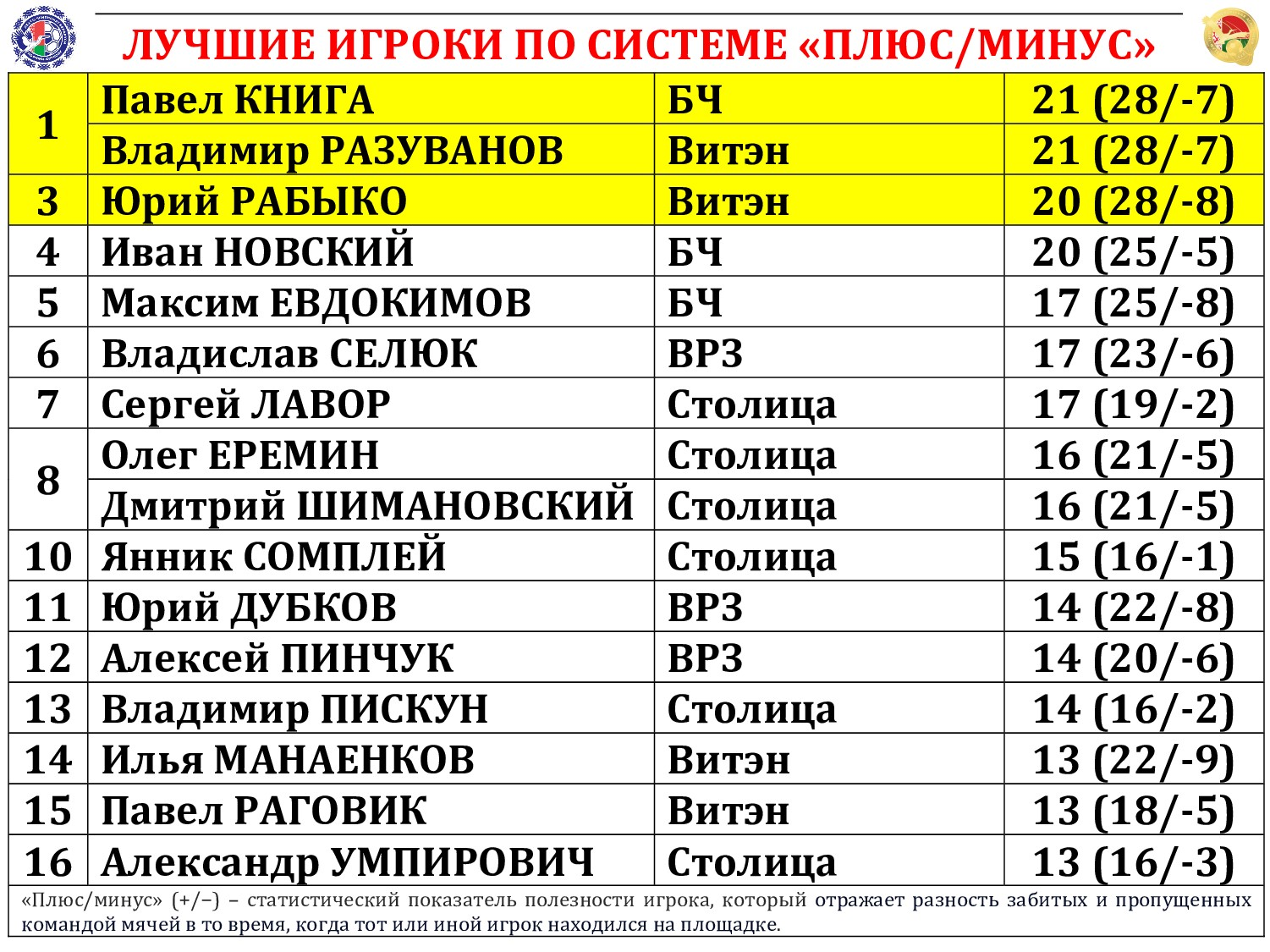 По традиции на сайте МФК «Столица» мы подводим итоги прошедшего тура с полной статистикой всех матчей, где указаны не только ассистенты при голевых «выстрелах», но и показатели по системе «плюс/минус» (статистический показатель полезности игрока, который отражает разность забитых и пропущенных командой мячей в то время, когда тот или иной игрок находился на площадке). Турнирная таблица, списки лучших бомбардиров, снайперов и самых полезных, символическая сборная, лучший игрок тура, ссылки на видеотрансляции и видеообзоры, 10-ка самых красивых голов, выпуски «Ясно о мини-футболе» и «Пятого полевого», репортаж об итогах из газеты «Прессбол» – вся информация о минувшем туре под одним заголовком!