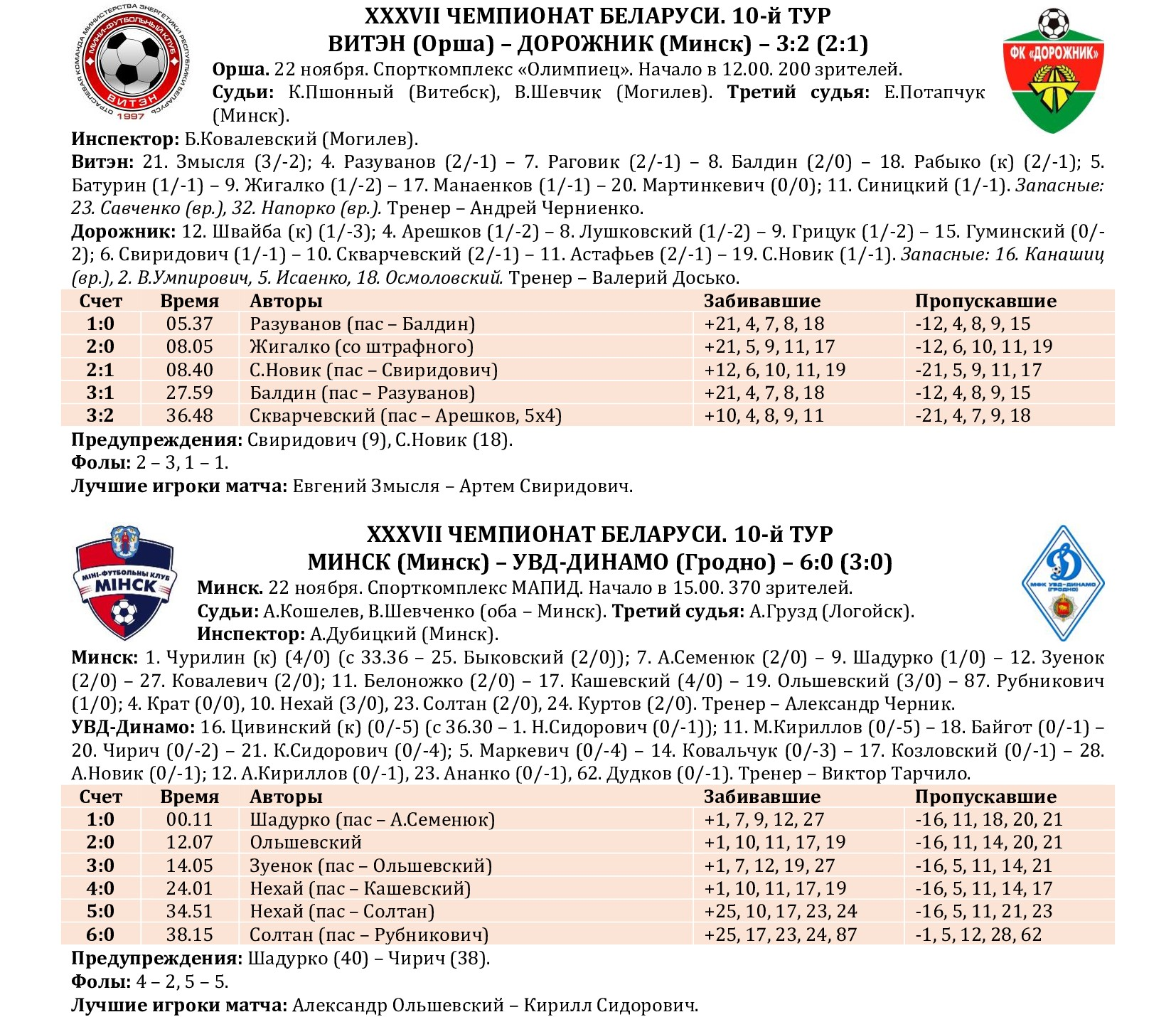 10-й тур XXXVII чемпионата Беларуси. Итоги