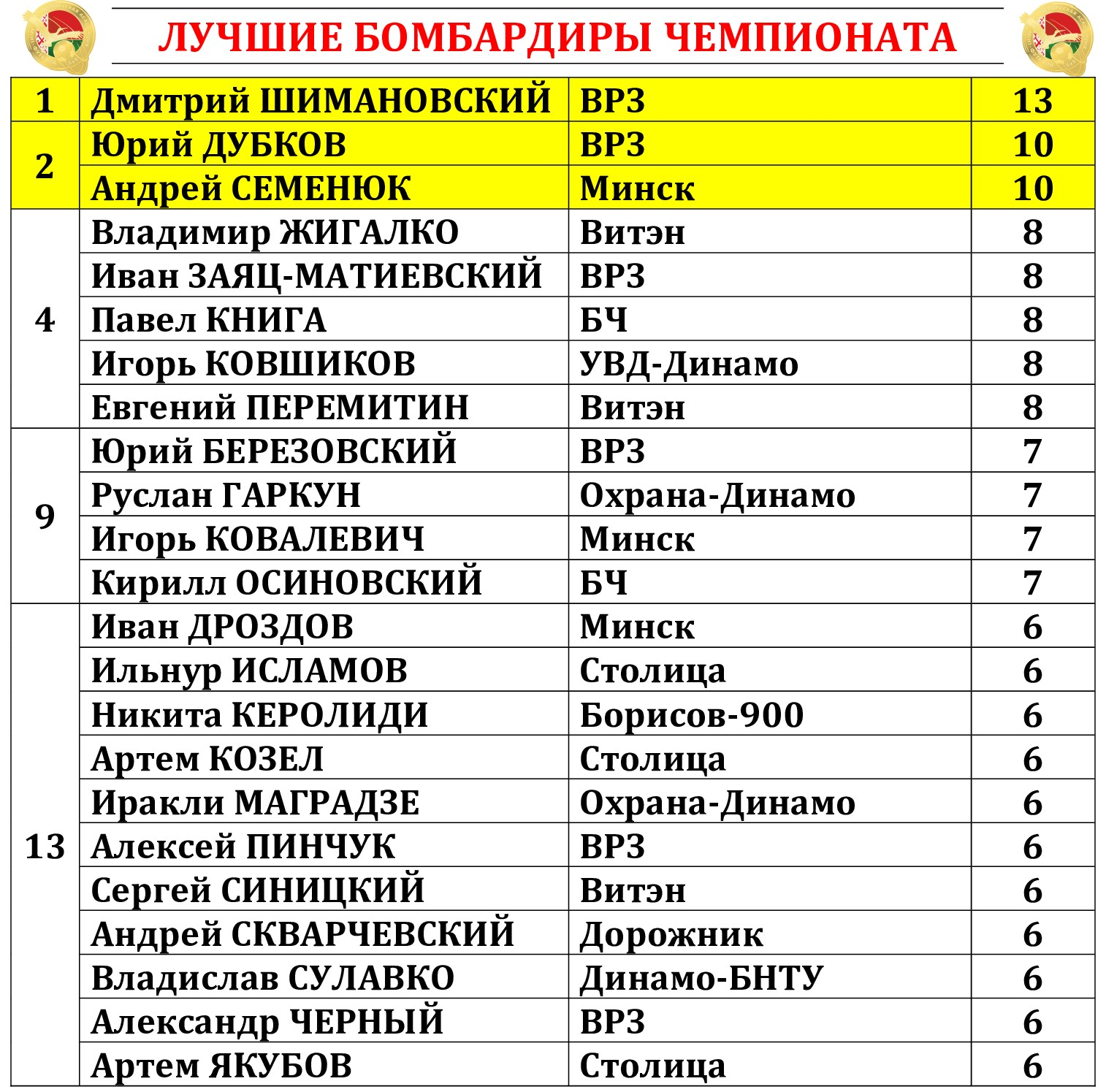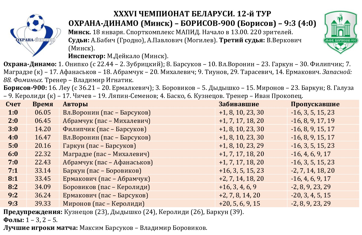 12-й тур XXXVI чемпионата Беларуси. Итоги