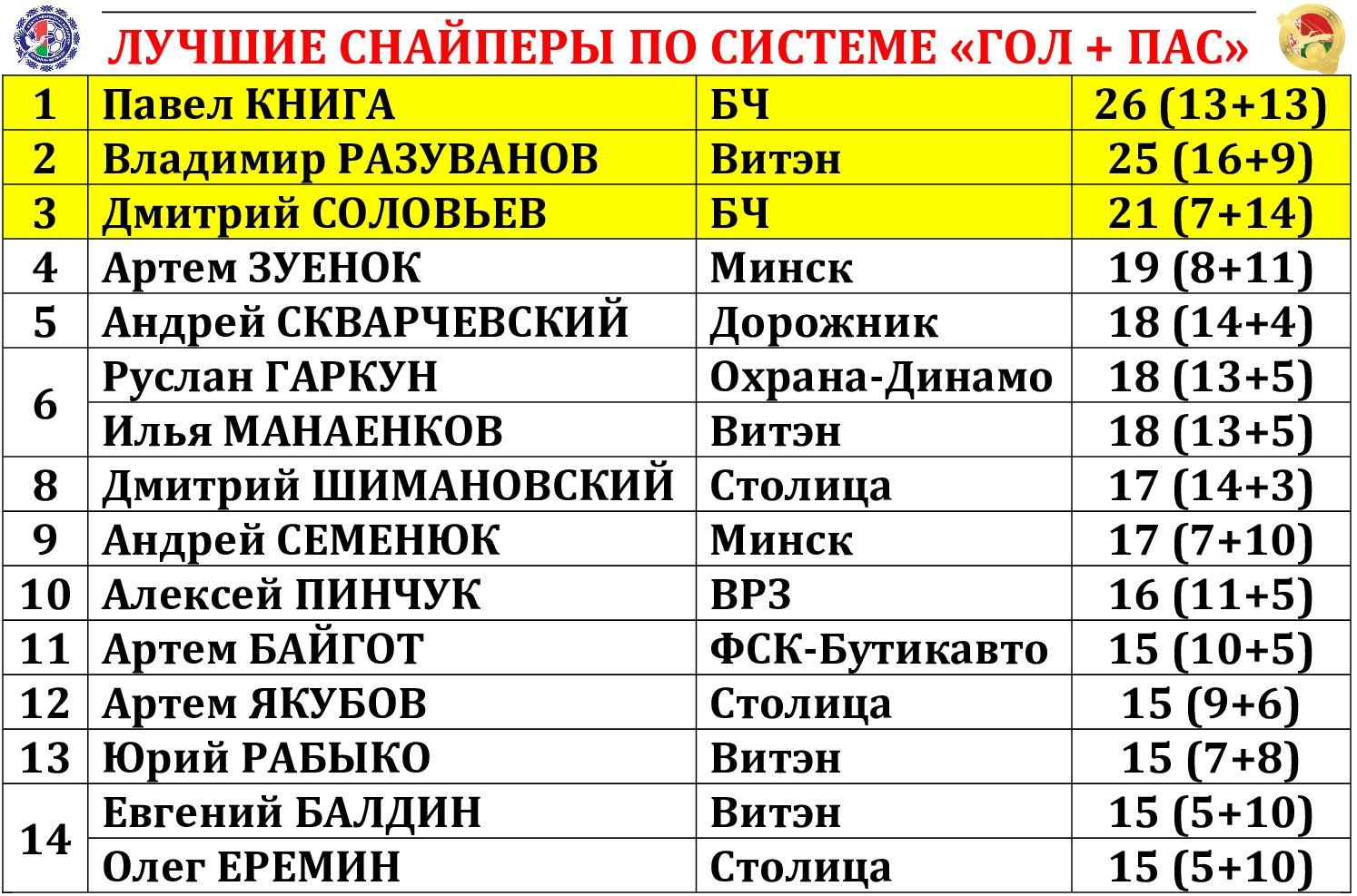 Михаил ЗРУБОВИЧ (БЧ); Максим БАТУРИН (Витэн) – Алексей ПИНЧУК (ВРЗ) – Даниил ЯРОШ (Борисов-900) – Вадим МИХАЛЕВИЧ (Охрана-Динамо)