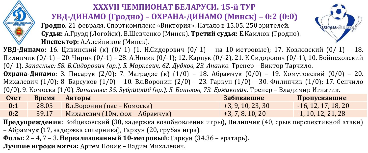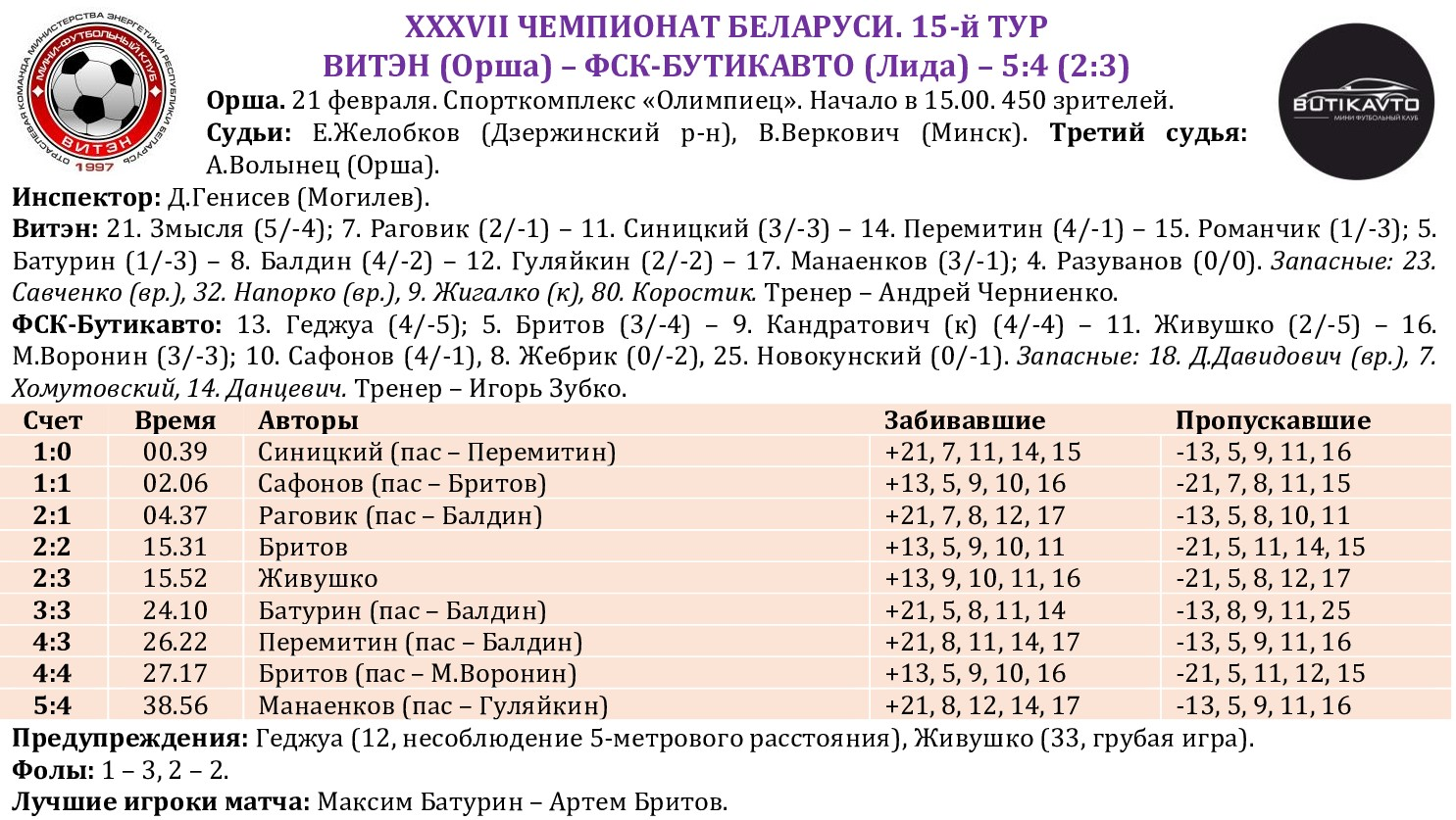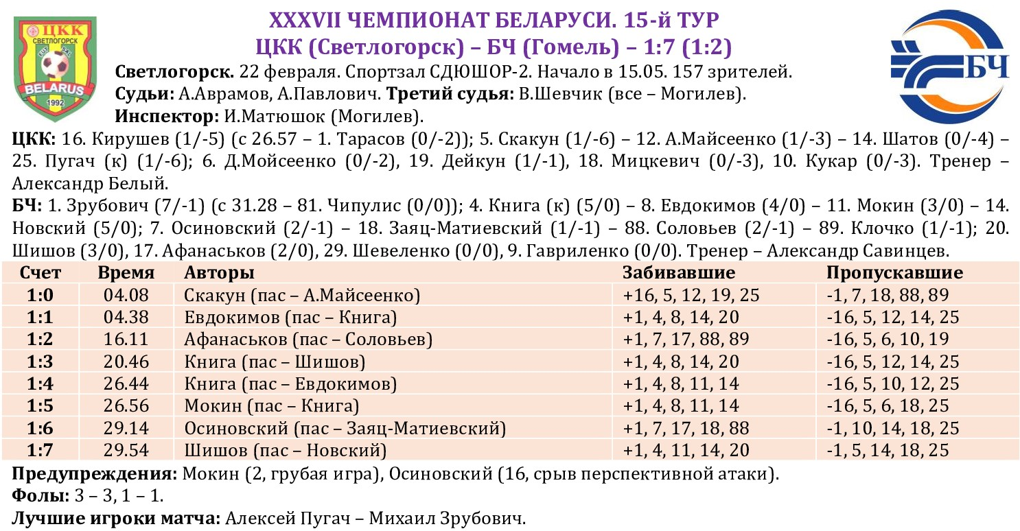 XXXVII ЧЕМПИОНАТ БЕЛАРУСИ. 15-й ТУР