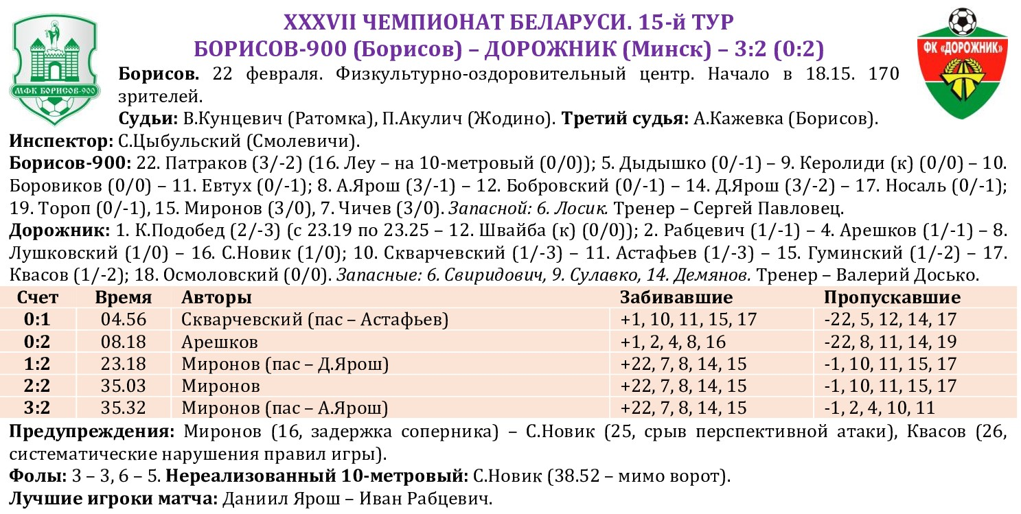 15-й тур XXXVII чемпионата Беларуси. Итоги