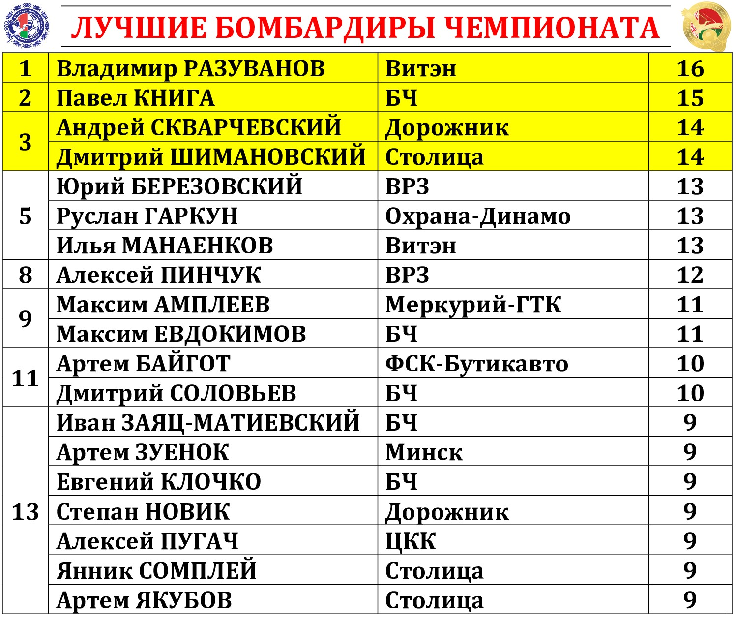 Владимир СТРЕМИЛОВ (ВРЗ); Кирилл ОСИНОВСКИЙ (БЧ) – Андрей ЧИБИСОВ (Меркурий-ГТК) – Артем ЗУЕНОК (Минск) – Янник СОМПЛЕЙ (Столица)