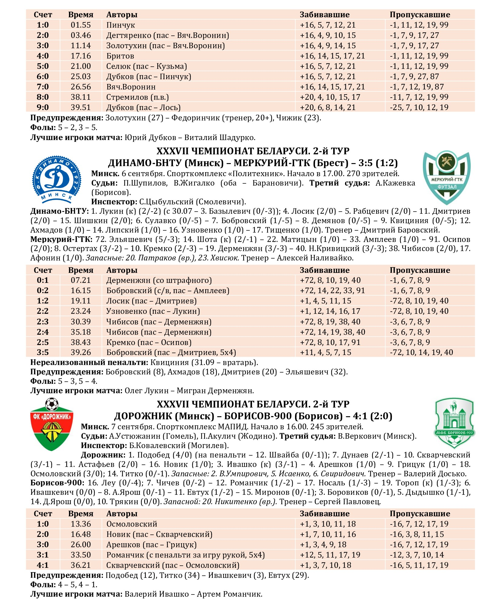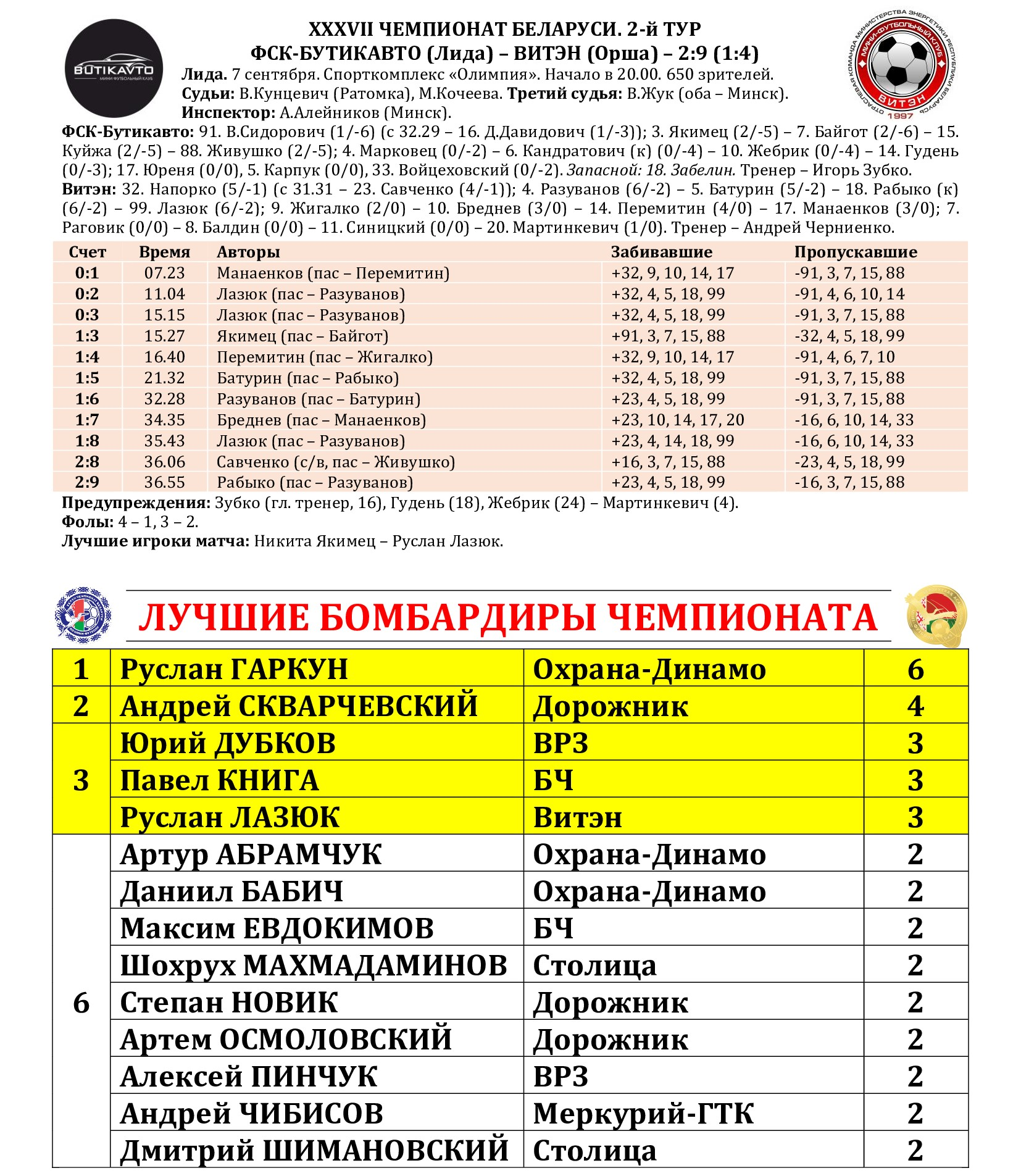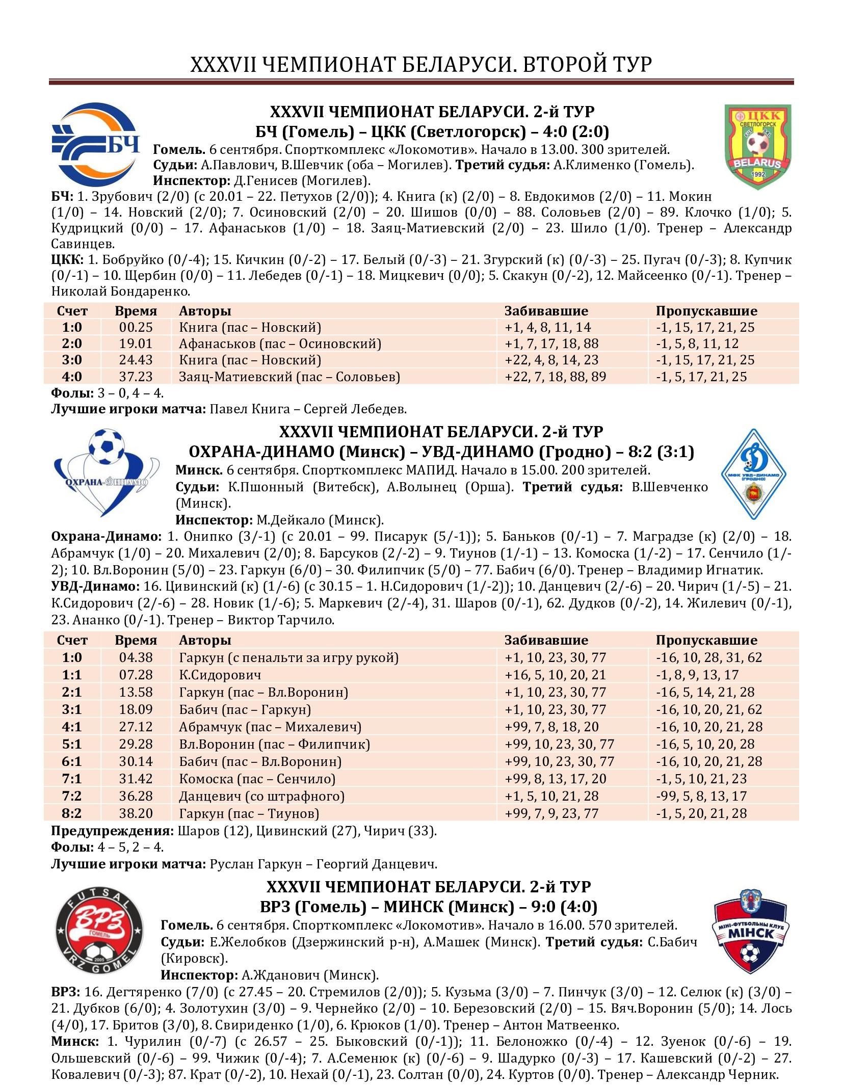 2-й тур XXXVII чемпионата Беларуси. Итоги