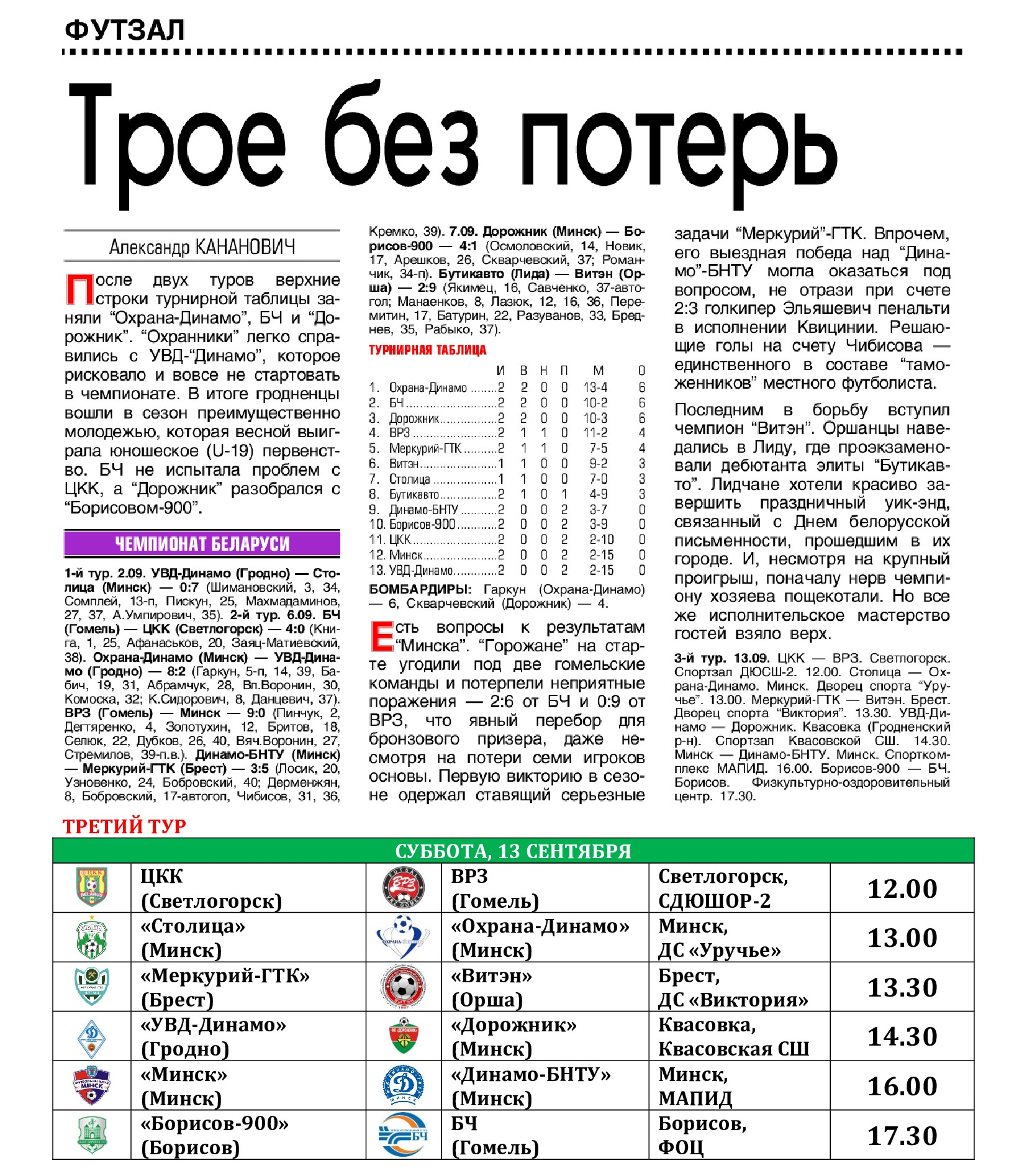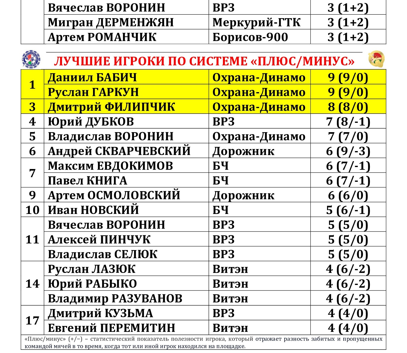 По традиции на сайте МФК «Столица» мы подводим итоги прошедшего тура с полной статистикой всех матчей, где указаны не только ассистенты при голевых «выстрелах», но и показатели по системе «плюс/минус» (статистический показатель полезности игрока, который отражает разность забитых и пропущенных командой мячей в то время, когда тот или иной игрок находился на площадке). Турнирная таблица, списки лучших бомбардиров, снайперов и самых полезных, символическая сборная, лучший игрок тура, ссылки на видеотрансляции и видеообзоры, 10-ка самых красивых голов, выпуск «Ясно о мини-футболе», репортаж об итогах из газеты «Прессбол» – вся информация о минувшем туре под одним заголовком!