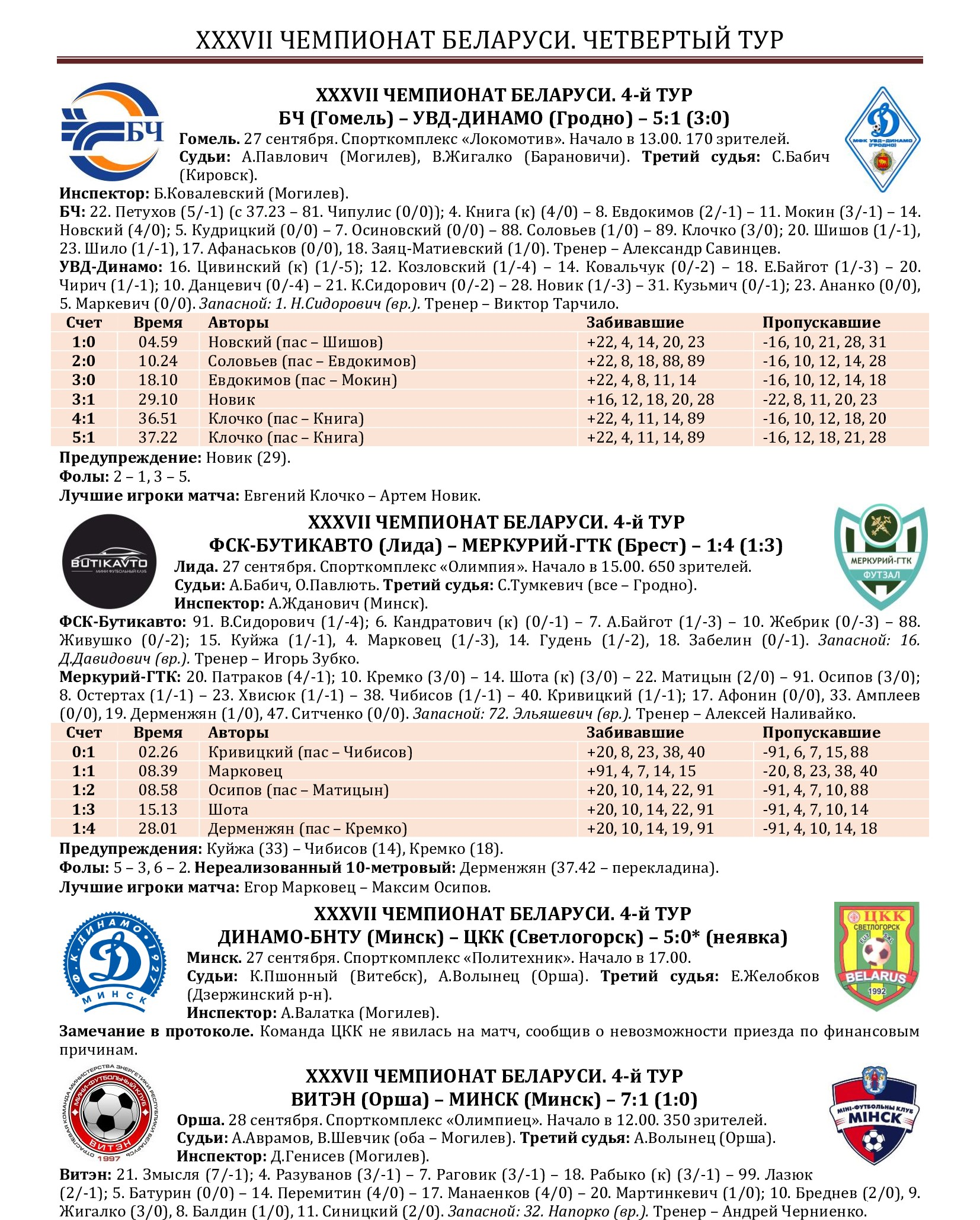 4-й тур XXXVII чемпионата Беларуси. Итоги