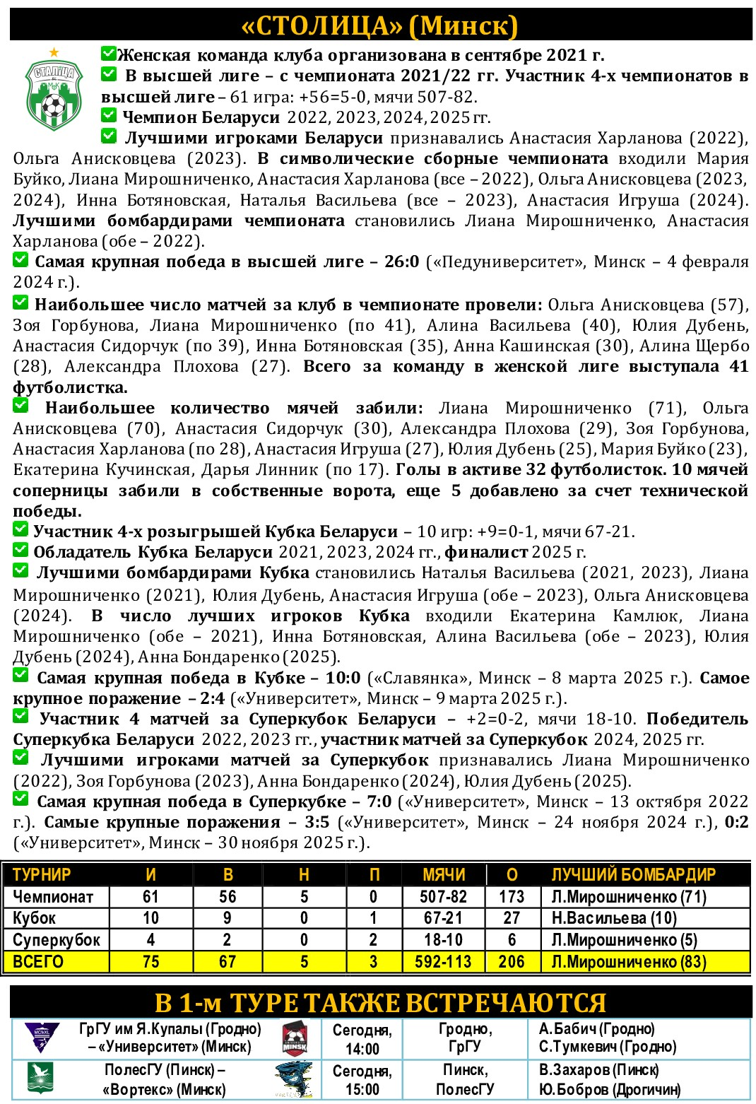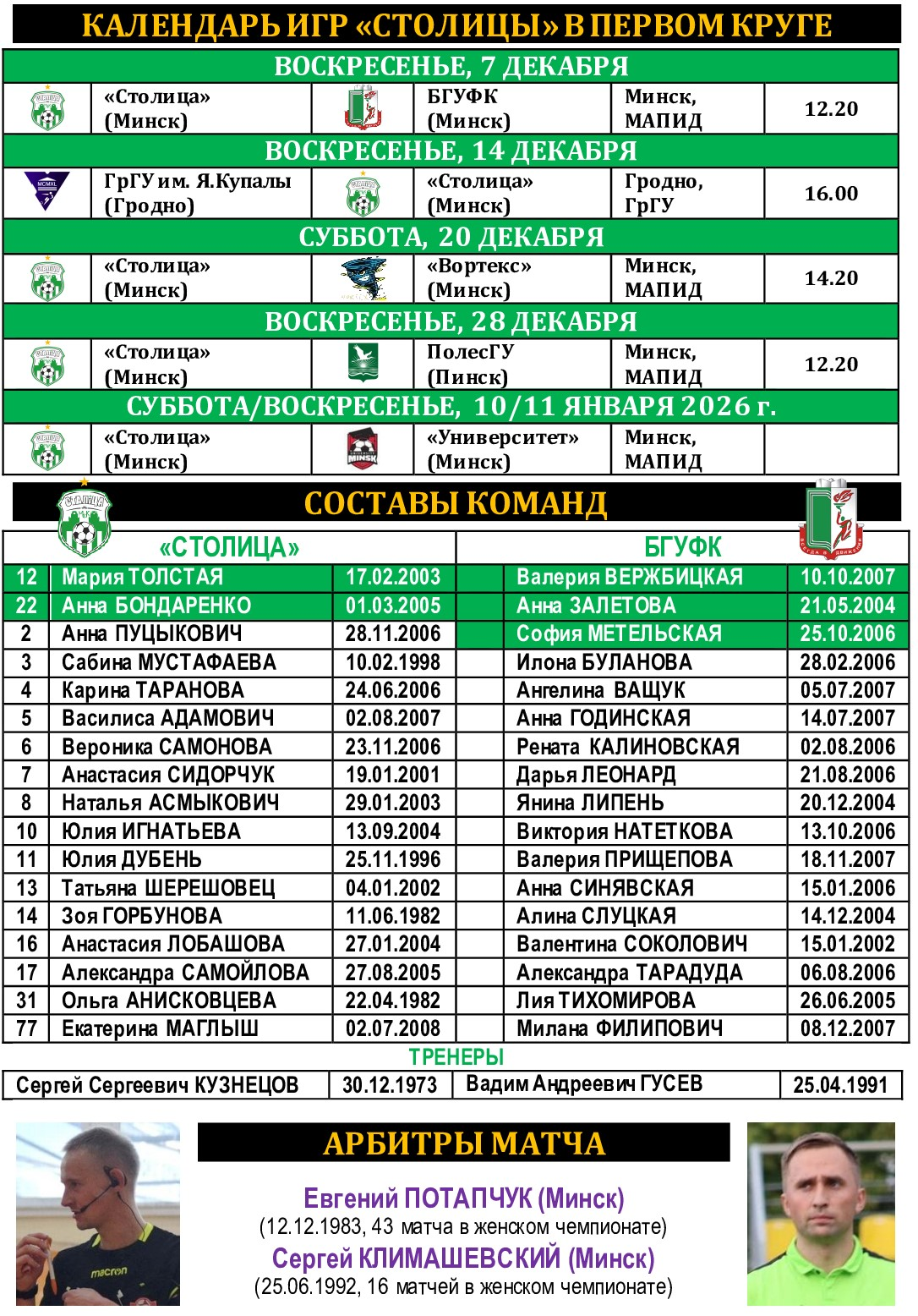 Анонс 1-го тура. Женщины. «Столица» – БГУФК