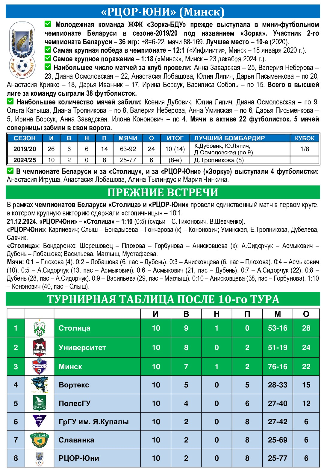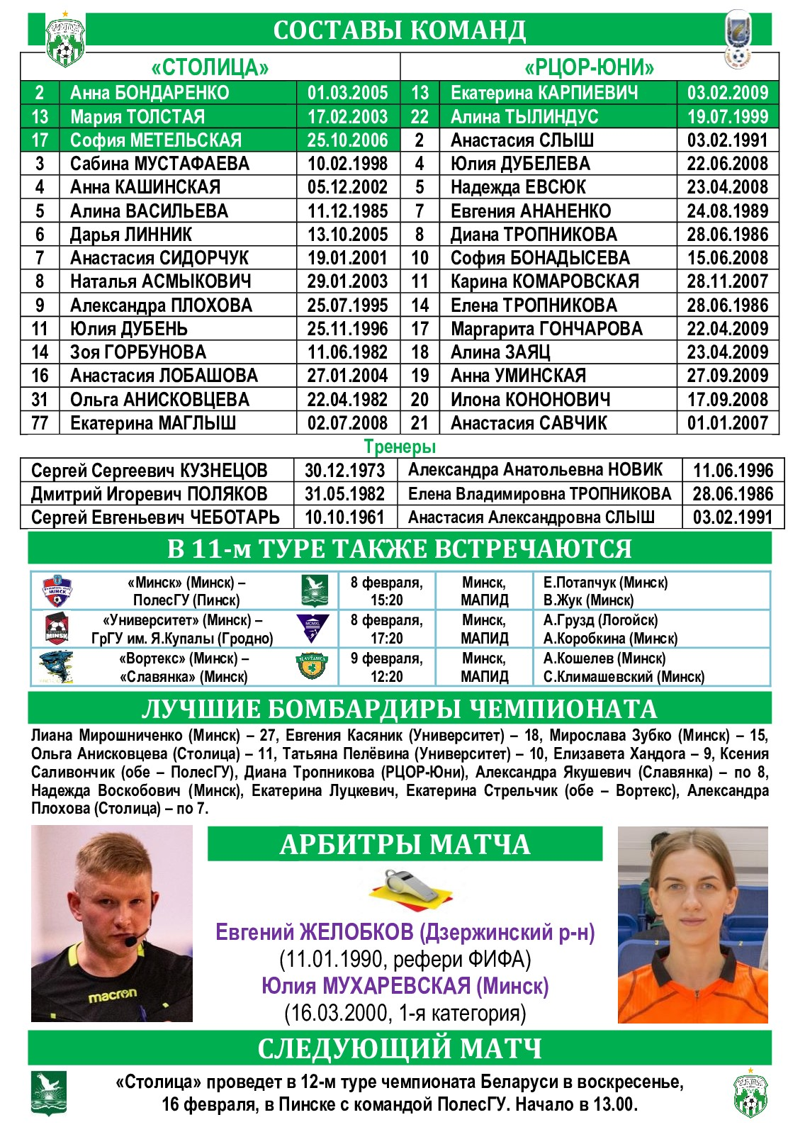 Анонс 11-го тура. Женщины. «Столица» – «РЦОР-Юни»