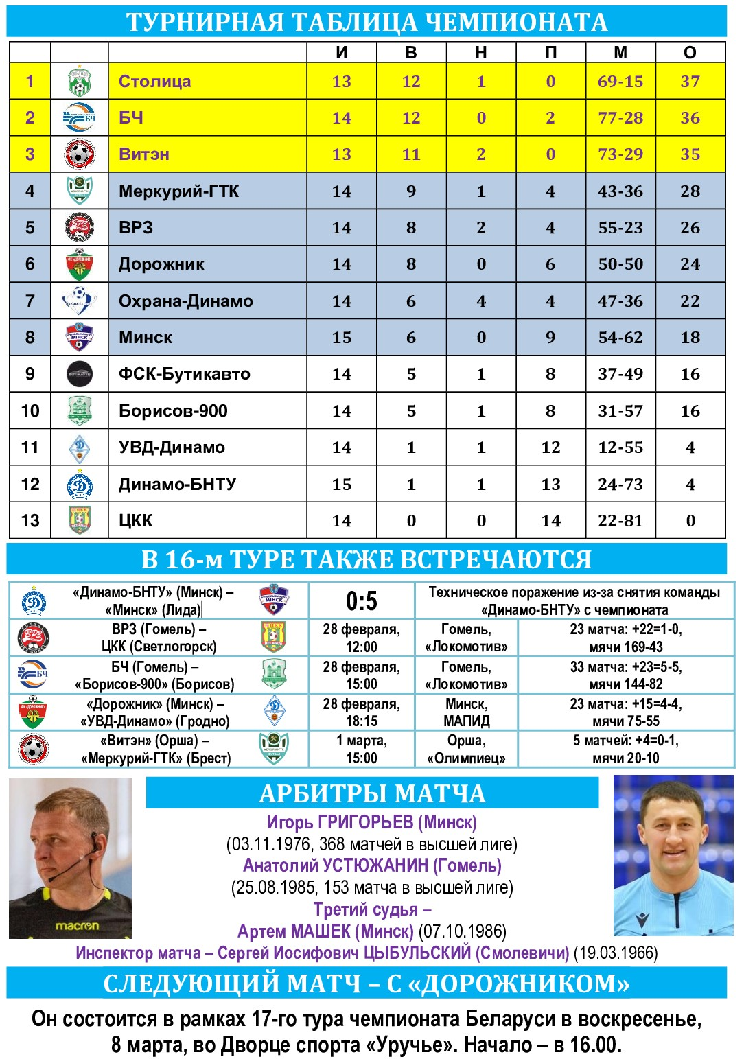 Анонс 16-го тура. «Охрана-Динамо» – «Столица»