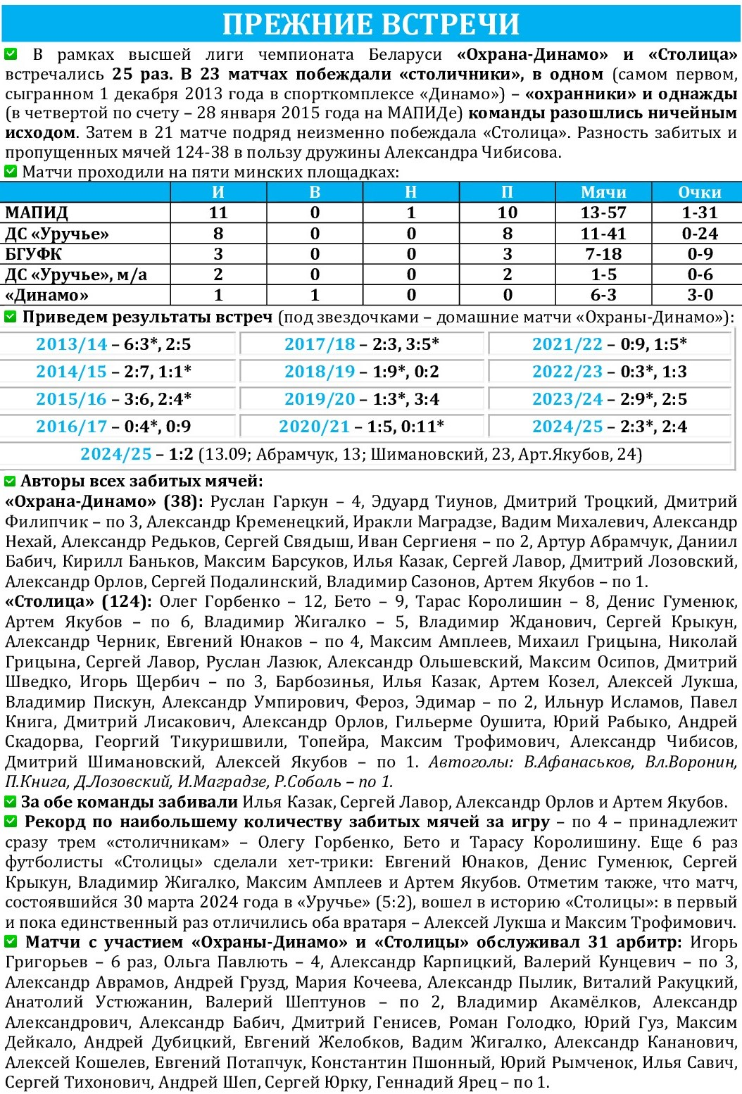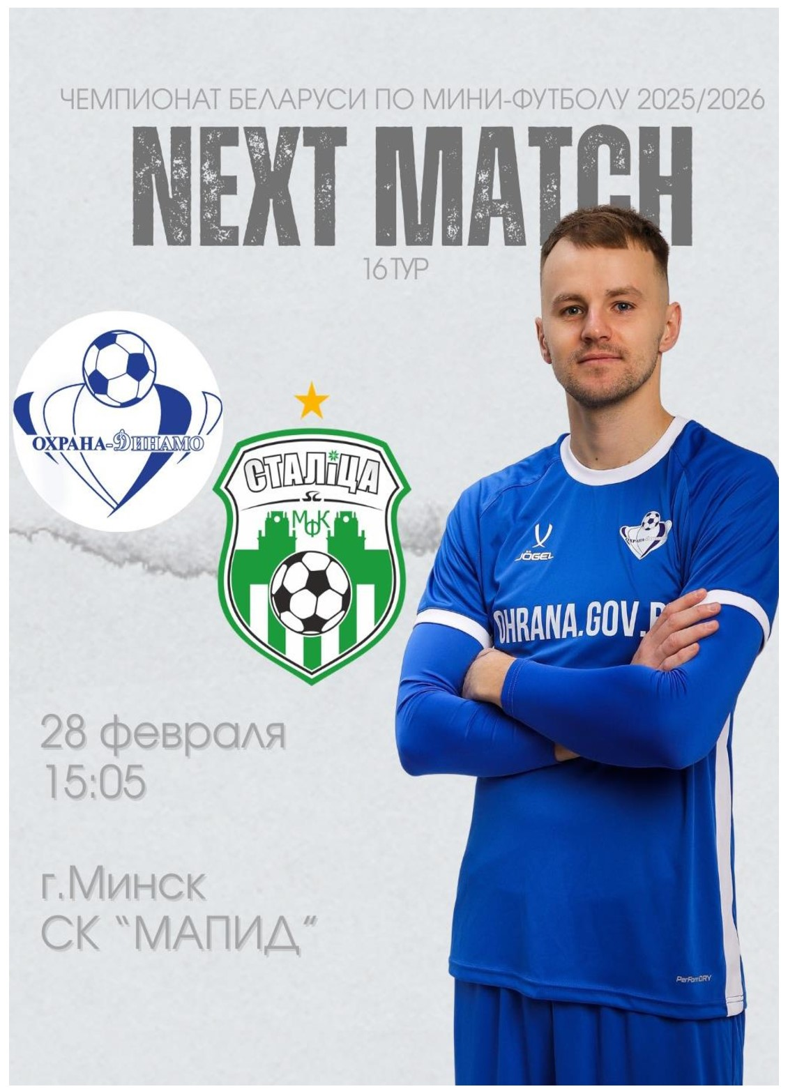 За минувшие 80 дней, за которые в известном мультфильме можно было объехать вокруг света, «Столица» провела всего один (!) матч в чемпионате. Две недели назад, обыграв в родных стенах «УВД-Динамо» (4:0). Но теперь всё, нужно выходить из тренировочно-комфортного режима, переходя в соревновательный. Пропустив 15-й тур из-за нечетного поначалу числа участников чемпионата, «Столица» всё же благодаря созданному очковому запасу сохранила лидирующее положение в турнирной таблице и в последний день зимы, в субботу, 28 февраля, отправится в гости на улицу Шаранговича к землякам из «Охраны-Динамо», которые с 22 очками идут на 7-й позиции, имея 4-матчевую беспроигрышную серию. Матч пройдет в спорткомплексе МАПИД и начнется в 15.05. Столь необычное время начала матча связано с прямой трансляцией на телеканале «ЯСНАе TV». В межкруговой паузе дружина Владимира Игнатика дозаявило бывшего игрока «Меркурия-ГТК» 24-летнего Артема Быцко. Сейчас в статусе травмированных пребывают основной вратарь Игорь Онипко и Даниил Бабич. Не сыграет против «Столицы» Артур Абрамчук, получивший в Гродно третью желтую карточку в чемпионате. Кстати, именно он забил единственный мяч в ворота нашей команды в матче первого круга. Тогда «столичники» не без труда выиграли – 2:1, лишь после перерыва перевернув ход игры в свою пользу, потеряв при этом на следующий поединок из-за удаления Артема Козела. Статистика взаимоотношений свидетельствует о безусловном перевесе «Столицы», которая выиграла 23 матча из 25. Надеемся, что и на этот раз команда Александра Чибисова порадует своих почитателей и продолжит свою победную серию, составляющую на данный момент 11 матчей (5 из них – кубковые). Приглашаем всех «столичных» болельщиков поддержать своих любимцев в мапидовском зале. Выезд – не самый дальний! Поэтому поддержка команды будет на самом высоком уровне. Важны – кожны!