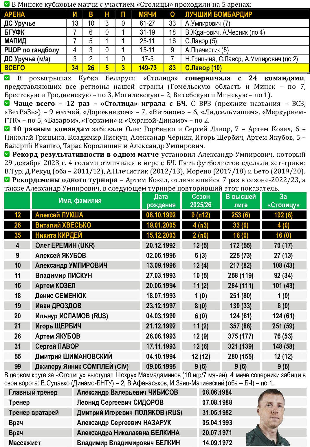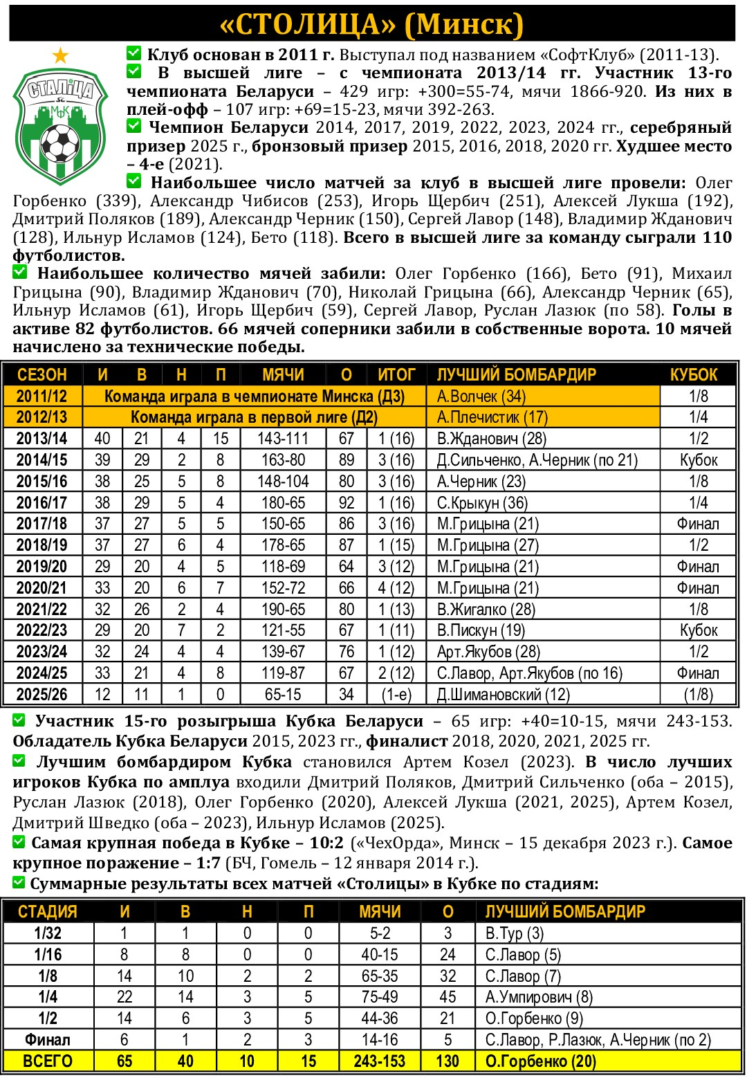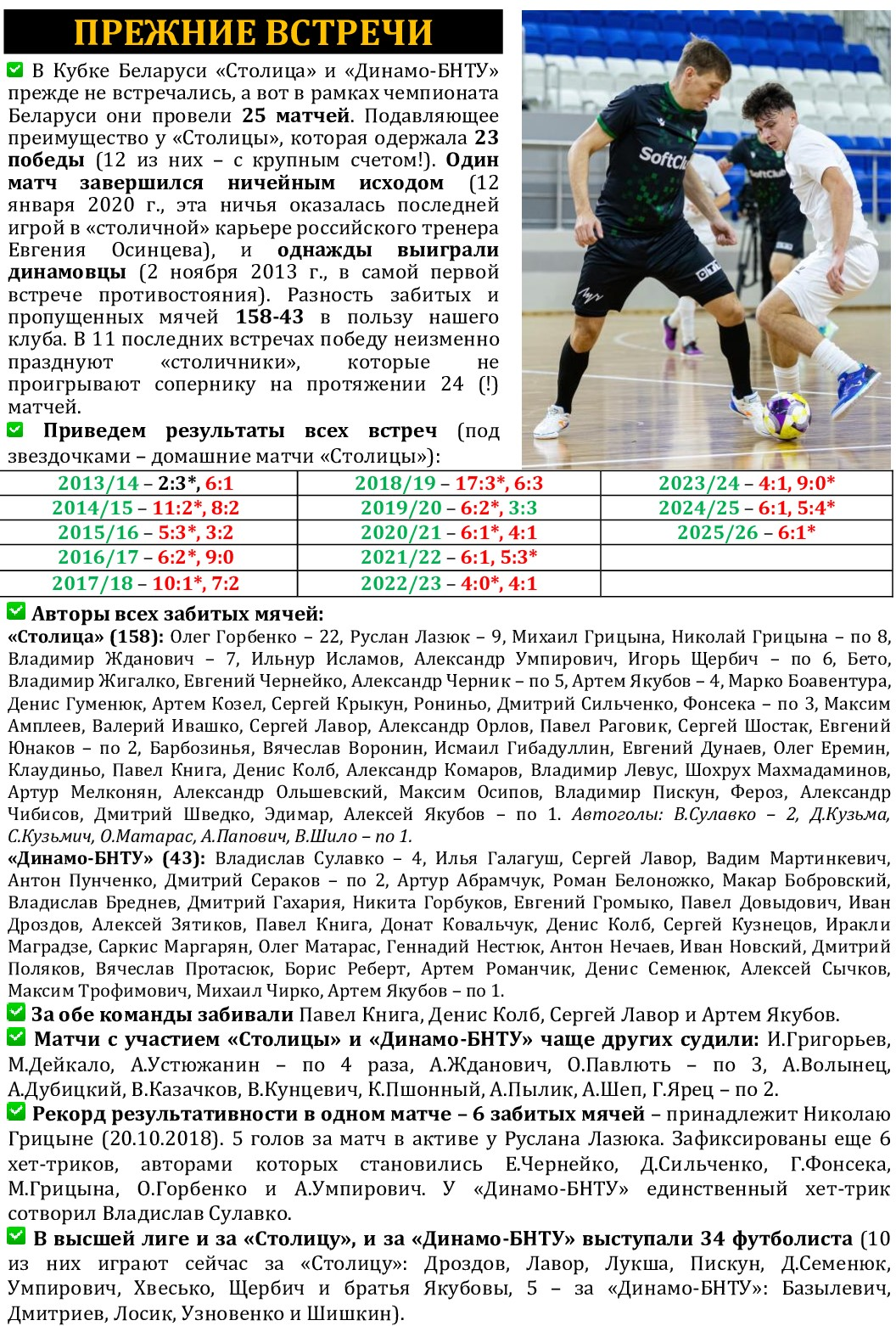 Чемпионат страны взял паузу до середины февраля. Сборная Беларуси провела два товарищеских матча в Словакии с местной командой (3:3 и 1:2), начались кубковые баталии. Согласно рейтингу, «Столица» стартовый этап Кубка пропустила, начав сразу с 1/8 финала, где волей жребия ей достались земляки из «Динамо-БНТУ». Руководство динамовского клуба официально известило Ассоциацию мини-футбола, что с 1 января 2026 года прекращается финансирование мини-футбольной команды, и та снимается с чемпионата и розыгрыша Кубка. Таким образом, матч против «Столицы», если не произойдет новогоднего чуда, может стать последним для дружины Дмитрия Баровского. Получается, что кузница молодых кадров прекратит свою работу? Большинство футболистов уже даже определились с новыми адресами продолжения карьеры, хотя для них на данном этапе важнее было бы еще годик «повариться» в своем молодежном кругу, набраться опыта, чтобы побороться затем с уже состоявшимися игрока за «место под солнцем». И есть какое-то нехорошее предчувствие, что это, возможно, не единственная зимняя потеря в высшей лиге. Хотя очень бы хотелось верить в лучшее. Приглашаем всех в субботу, 27 декабря, во Дворец спорта «Уручье» на кубковый матч «Столицы» и «Динамо-БНТУ». Матч будет показан в прямом эфире на телеканале «ЯСНАе TV» и начнется в 15.00. Да, и сможем снова увидеть на площадке Янника Сомплея. Проанонсированный его уход из «Столицы» отменяется! Ивуариец продолжит выступления в составе нашего клуба!