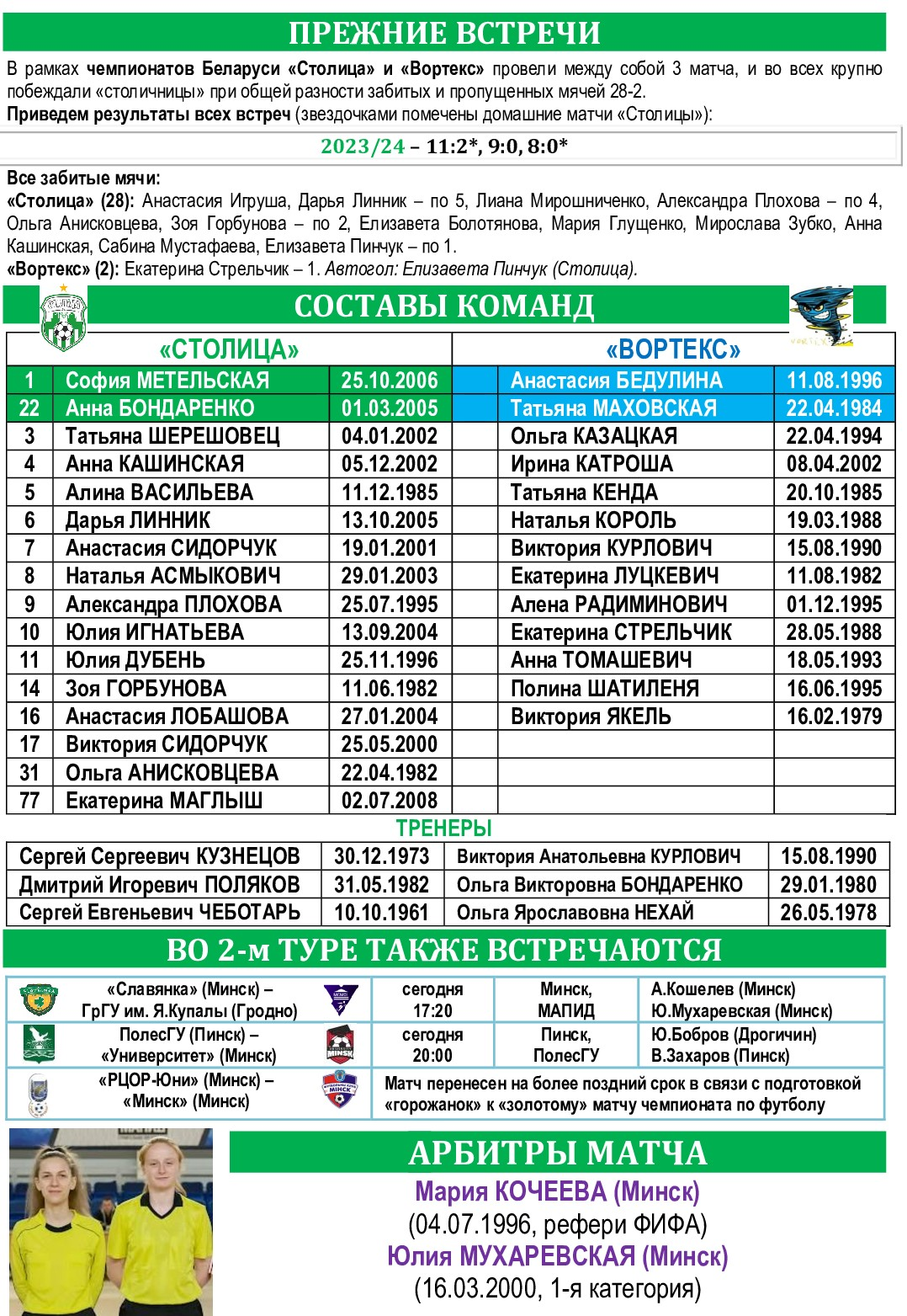 Анонс 2-го тура. Женщины. «Столица» – «Вортекс»