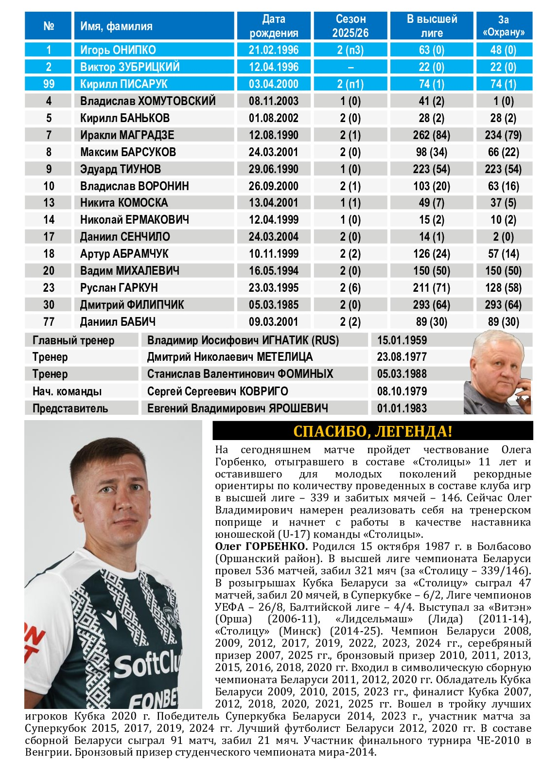 «Ох, рано, встает охрана!» Кто помнит эти строки из «Бременских музыкантов»? Наш соперник на ходу! Сразу без долгих вкатываний – две победы в стартовых турах и лидерство в чемпионате! Руслан Гаркун за пару матчей уже наколотил 6 мячей в ворота соперников. Легендарный и харизматичный тренер Владимир Иосифович Игнатик уже который сезон управляет очень сыгранным и стабильным коллективом! Всё это в совокупности делает предстоящий матч интригующим, ожидаемым и с претензией на «гвоздь» тура!
