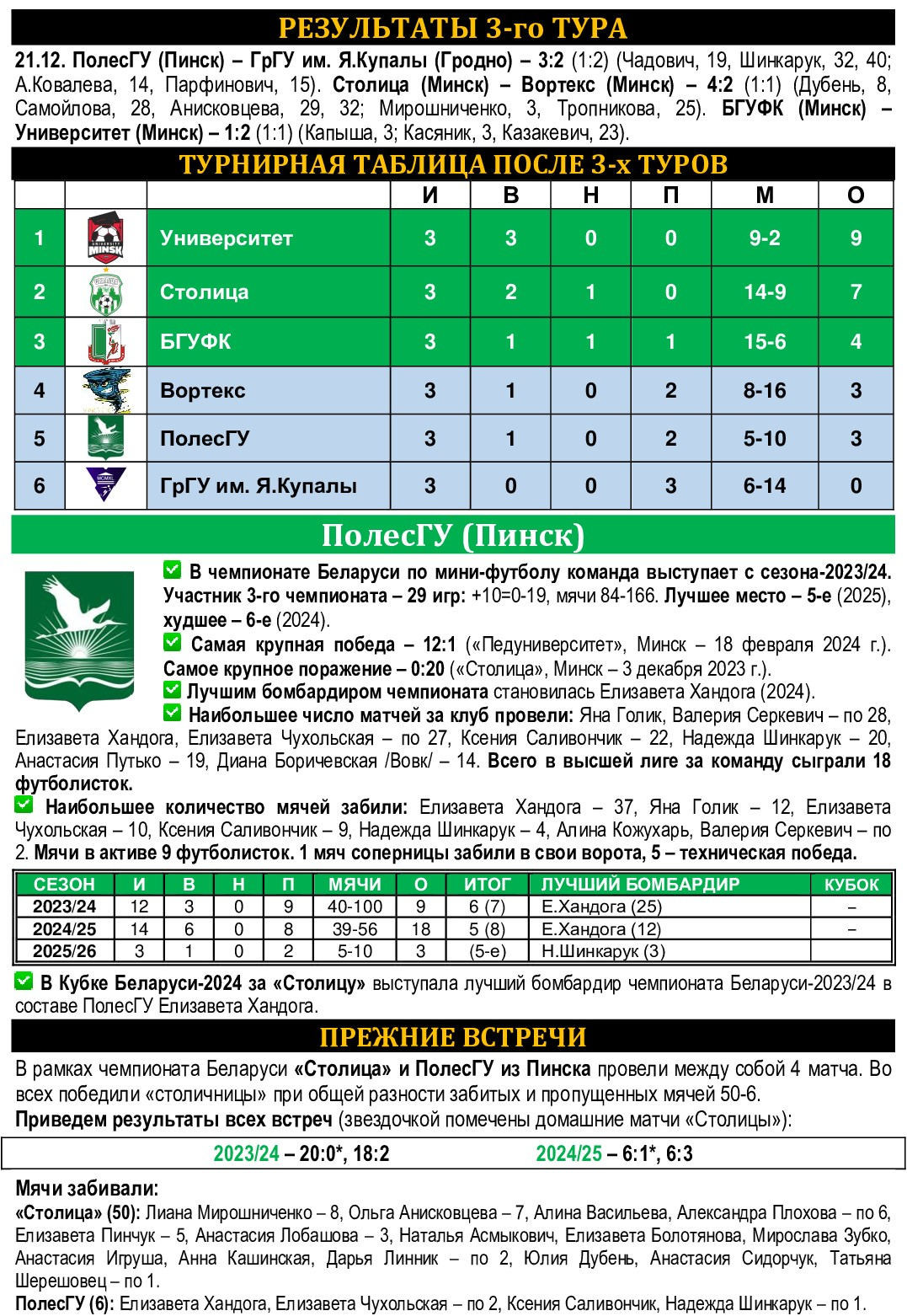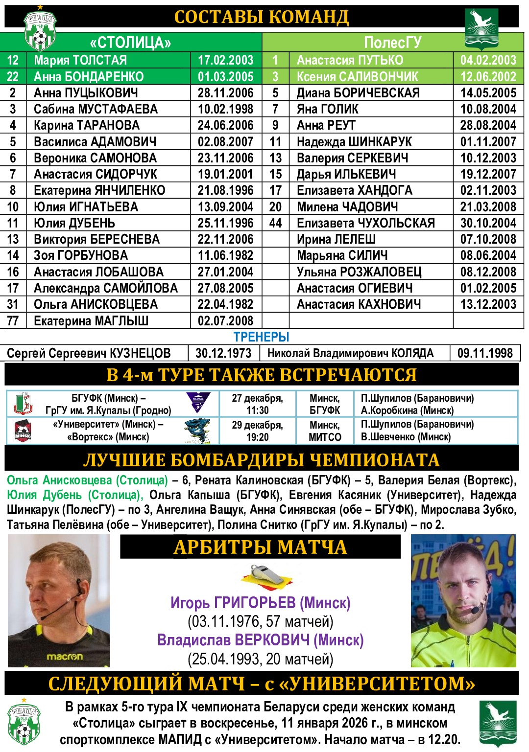 Анонс 4-го тура. Женщины. «Столица» – ПолесГУ