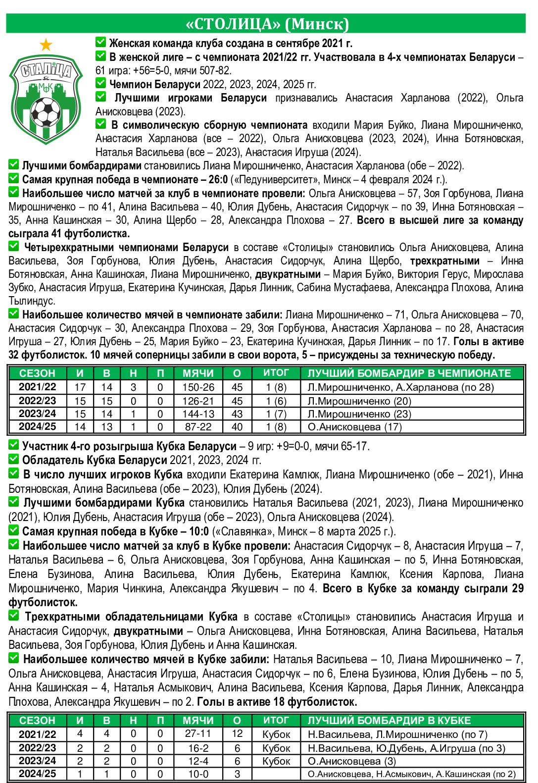 СТОЛИЦА (Минск) – СЛАВЯНКА (Минск) – 10:0 (6:0)