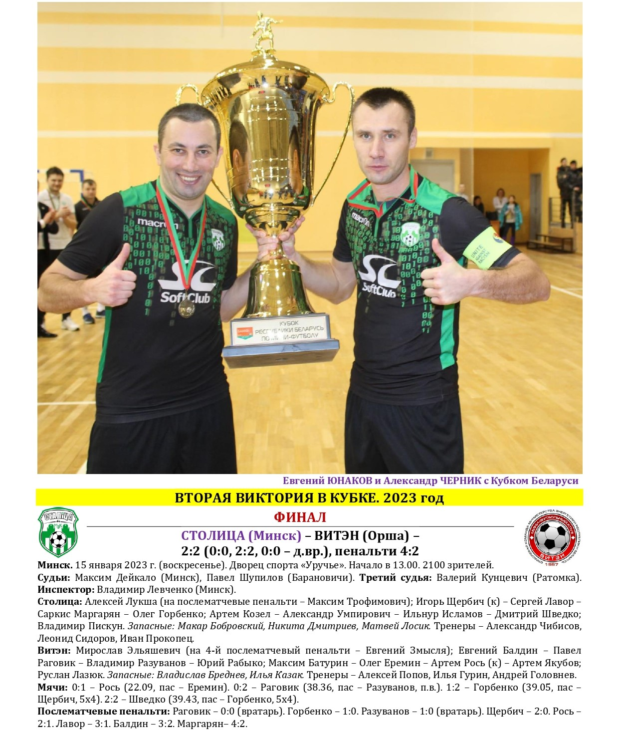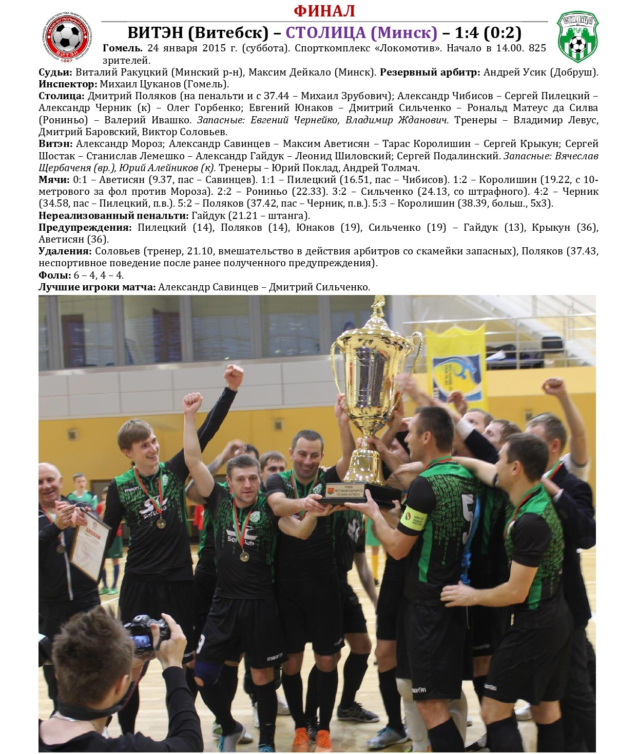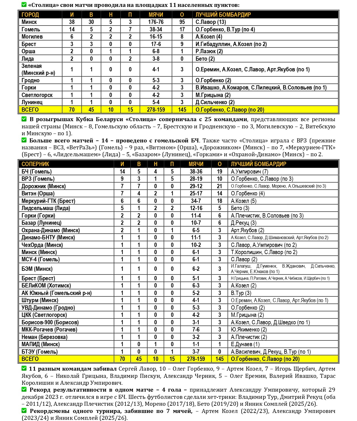 Не так давно «Столица» в третий раз в своей биографии стала победительницей Кубка Беларуси по мини-футболу. Предлагаем вашему вниманию большой статистический материал, посвященный итогам XXXVI розыгрыша Кубка с акцентом на выступления в нем нашей команды, а также подведем итоги 15-летней истории «дружбы» «Столицы» с этим турниром. Раскладка результатов по сезонам, лучшие бомбардиры, «долгожители», все соперники, города и судьи. Читаем и анализируем!